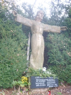 Als zeitlebens gläubiger Christ, und in seiner Jugend im Alfterer Pfarrleben aktiv, rieb sich Maucher doch stets an der katholischen Kirche, die ihm angesichts des Leidens auf Erden die Lehre Christi nicht konsequent genug zu verwirklichen schien. Den bedeutendsten Ausdruck seines Glaubens stellt die Statue dar, die er bereits unmittelbar nach Kriegsende 1945 aufstellen ließ, den "Segnenden Christus", der, wenn auch etwas versetzt gelegen, heute den Schluss- und Zielpunkt des Friedenswegs bildet.