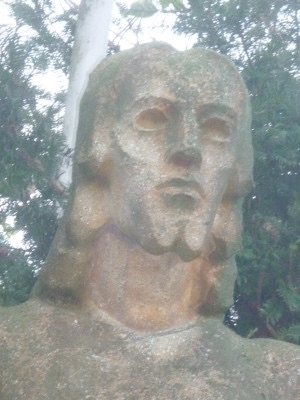 Eine dort angebrachte Tafel schildert ausführlich Umstände und Motivation der Aufstellung: "Diese Christusstatue wurde errichtet im Jahre 1945 zum Dank für Errettung aus den großen Kriegsnöten. Sie wurde am ersten Sonntag im Oktober 1945 vom hochwürdigen Herrn Dr. Daniels aus dem Priesterseminar in Bonn unter Beisein von 50-60 Freunden und Bekannten unserer Familie feierlichst gesegnet und eingeweiht. Die Einweihungsworte waren die, wenn wieder christliche Zeichen im öffentlichen Leben entstehen, statt heidnische gottlose Propaganda, wird es wieder eine bessere Zukunft für alle Völker und Rassen geben. Die unglücklichen Zeiten, die wir erlebten, sind die Folgen vom Abfall der Völker von Christus und seinen Geboten. In diesem Sinne soll diese Christusstatue alle Besucher mahnen und lehren."