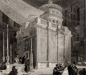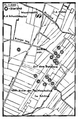 Das "Heiliges Grab" aber bezeichnete man einen ca. 10 m langen und 1 ½ m breiten bronzezeitlichen Grabhügel auf der Grenze zwischen Roisdorf und Alfter. Wie die zahlreichen weiteren auf der Höhe über dem mittelalterlichen Pilgerweg "Blutpfad" oder "Jungfernpfad" gelegenen Hügel war er mittlerweile durch roden und beackern eingeebnet worden, doch hatte ihn Wilhelm Mauchers Vater mit Kiefernbäumen gekennzeichnet. Maucher gibt auf der Tafel hierzu einen Text wieder, der ihm bereits 1936 von Gemeindeförster Hennes überreicht worden war, "mit der Bitte, die besagte Stelle im Sinne der Sage würdig zu kennzeichnen".
